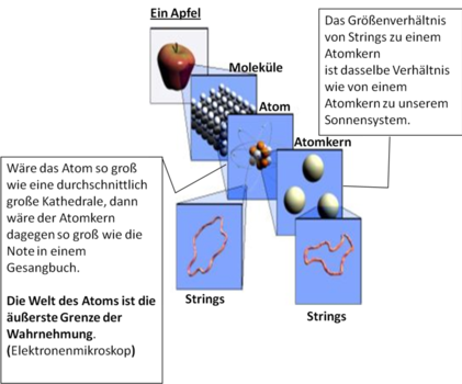 Die Strings in der Stringtheorie sind das, was ist, auf kleinster, nur rein mathematisch beschreibbarer Ebene.